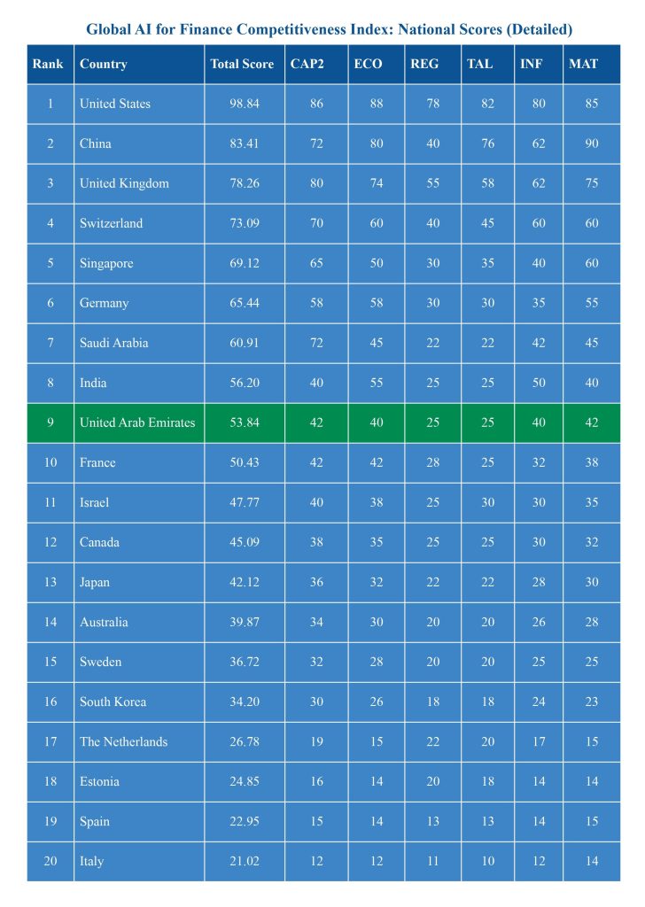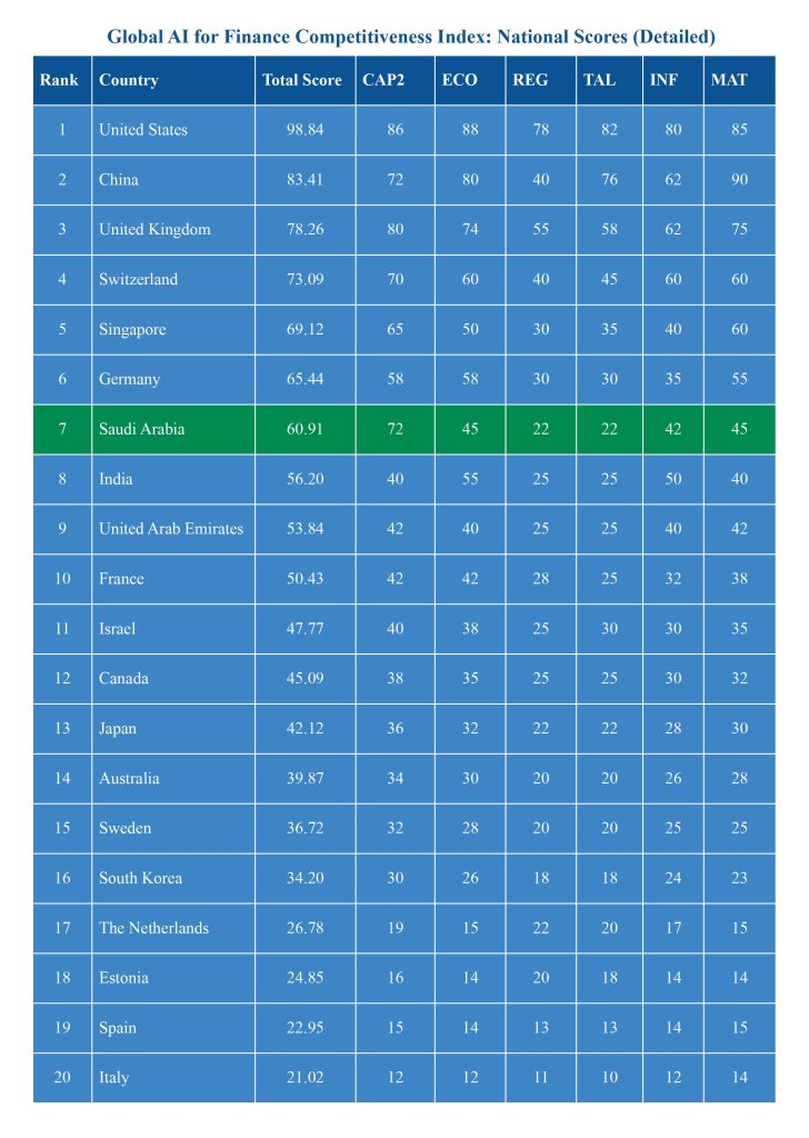 KSA and UAE Enter Global Top 10 in AI for Finance Competitiveness Index